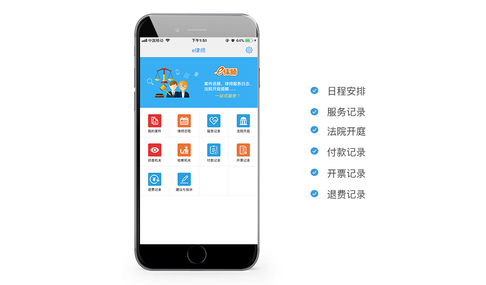 可以查看律師日程安排、服務(wù)記錄、法院開庭等……