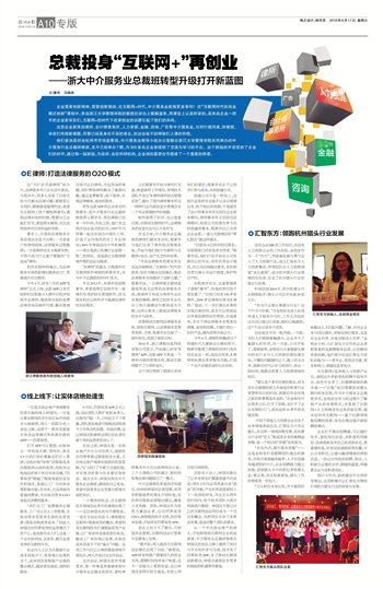 2016年06月17日杭州日報對e律師進行了專版報道:在“不打官司請律師”的今天,法律服務早已在生活中普及,可現實中,很多人采取了自助式的方式解決法律問題:需要簽訂合同時,跟著感覺隨便約定,或者在互聯網上找個模板照著寫;遇到法律糾紛的時候,需要自己出庭打官司,或覺得太麻煩,往往選擇放棄對自身利益的爭取。