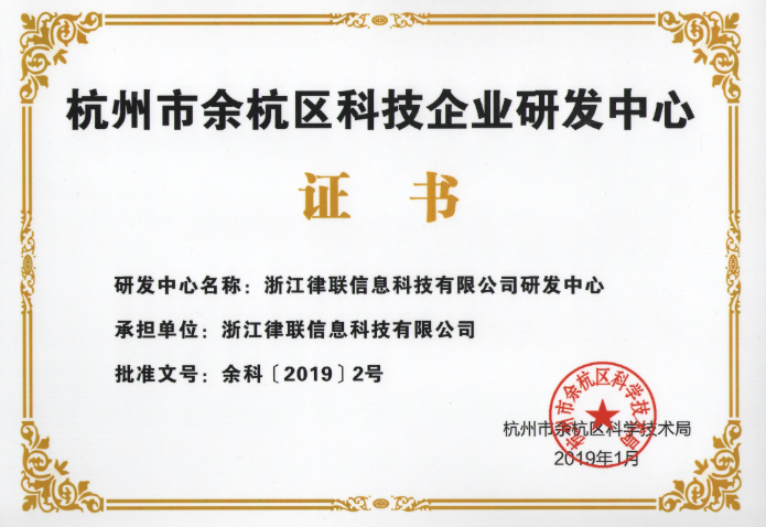 為深入實施創新驅動發展戰略,加強余杭區科技企業研發中心建設與管理,進一步增強企業自主創新能力和市場競爭能力,加快推動產業轉型升級,根據《余杭區科技企業研發中心認定辦法》(余科【2019】2號)文件精神,經評審,認定浙江律聯信息科技有限公司研發中心為余杭區科技企業研發中心。